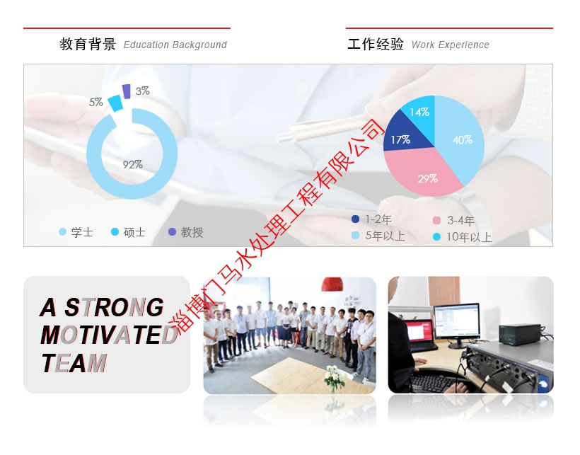 門馬水處理擁有占總人數20%的研發團隊,團隊成員包括一批中青年科學家、碩士、學士等科研人員,是國內在專業水處理環保領域中研發人員多、研發實力強的高科技人才隊伍之一。公司設立了工程技術研究中心,并與高校緊密合作、共同設立企業工作站進行新技術攻關、新材料研究、新產品開發以及技術人才的培養。